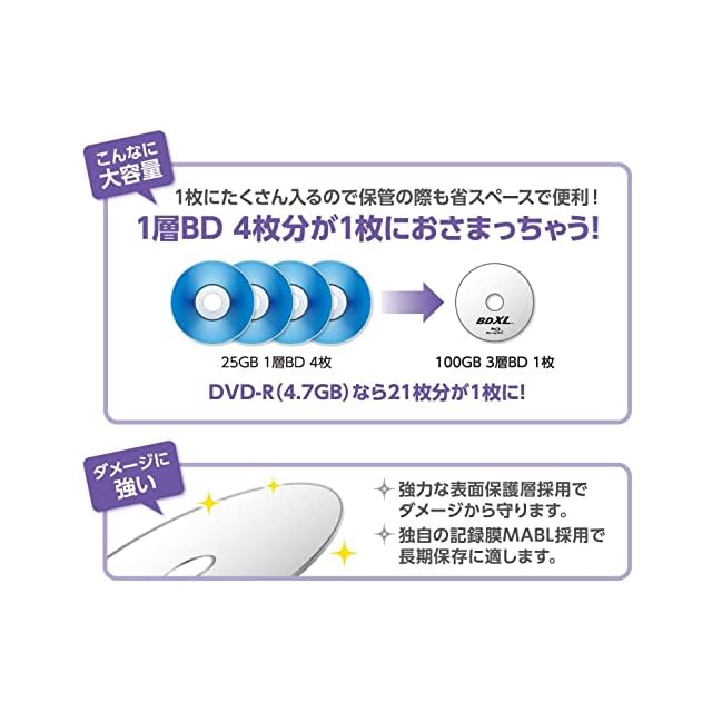 大容量くり返し録画用BD-RE DL(50GB)の20枚パック