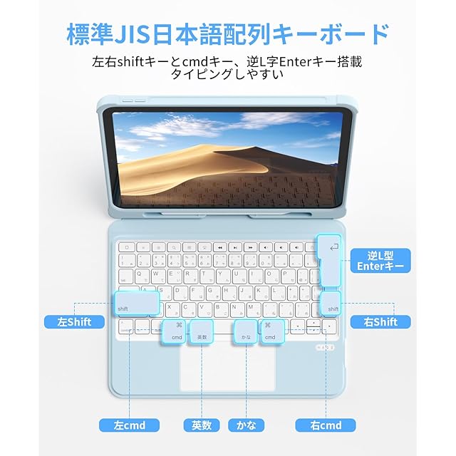 ✅【業界革新JIS標準日本語配列】ipad 10世代 キーボード はJIS規格準拠の日本語配列を採用し、逆L型Enterキー、左右shiftキー、左右cmdキー搭載、より快適にタイピングできます。また、キーが静音性に優れた素材を採用し、静音性を70%アップしました。安静なカフェや図書館などでも周囲を気にせず利用できます。