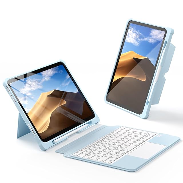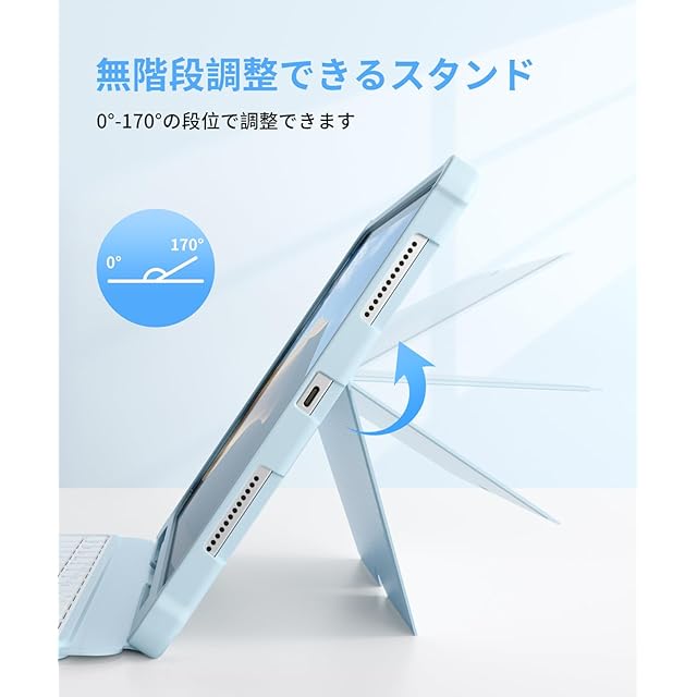 Omikamo 【業界革新版】ipad A16 11世代&10世代 JIS日本語配列キーボード 超高精度トラックパッド付き ipad A16 キーボード 人間工学 170°無階段調整 静音キー 11インチ/10.9インチ 縦置き 横置き 脱着式 ペン収納 全面保護 省エネ Type-C充電式 日本語取扱説明書付き ブルー
