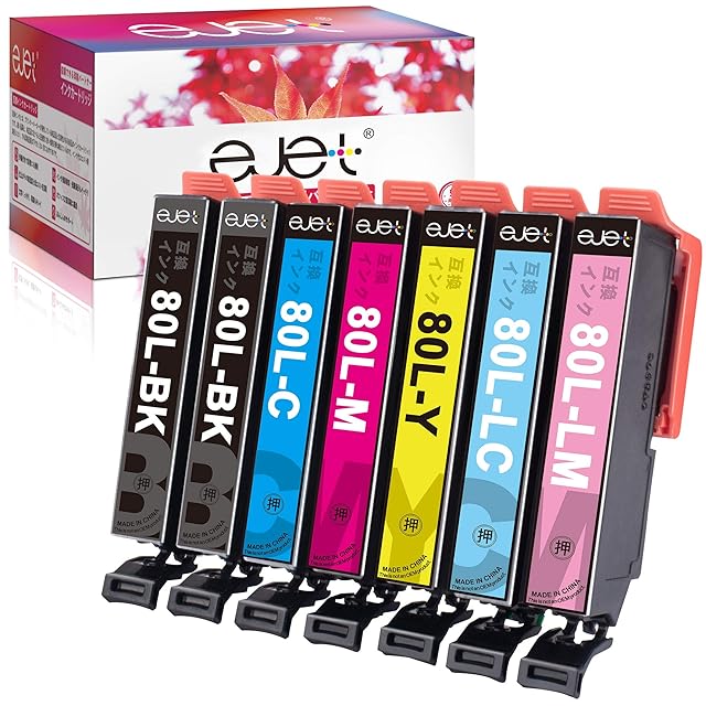 ●パッケージ内容: IC6CL80L 大容量 は ICBK80L *2、 ICC80L *1、ICM80L *1、ICY80L *1 ICLC80L *1 ICLM80L *1 合計7本があります。