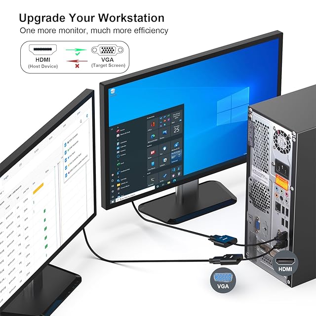 【解像度】1920 x 1200(1080pのHD画質)までの解像度に対応しており、美しく高精細な信号を出力できます。臨場感溢れる高精細な大画面映像を楽しみます。内蔵の高度なICチップは、HDMIデジタル信号をVGAアナログ信号に変換します。 双方向コンバーターではなく、VGAからHDMIに信号を送信することはできません。