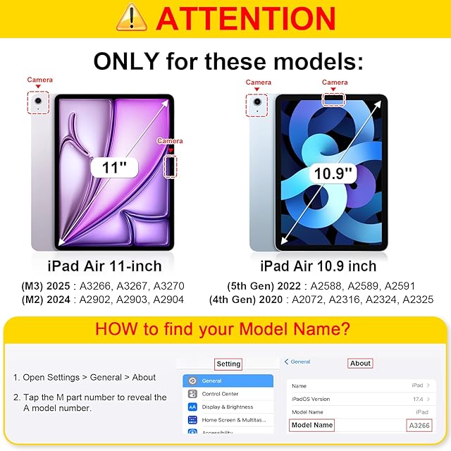 【対応機種】iPad Air 11インチ(M3) 2025発売 第7世代(モデル番号:A3266/A3267/A3270) / iPad Air 11インチ(M2) 2024発売 第6世代 (モデル番号:A2902/A2903/A2904) / iPad Air 5 2022発売 第5世代 (モデル番号:A2588/A2589/A2591) / iPad Air 4 2020発売 第4世代 (モデル番号:A2072/A2316/A2324/A2325) 10.9インチ 専用スマートケース、透明バックカバー。(ご注意:iPad 第11世代 (A16、2025) 11インチ/ 第10世代 (2022) 10.9インチ、iPad Pro 11インチまたはiPadの他のモデルには対応していません、ご注文の際に、お手元機種のモデル番号を確認をお願い致します。)