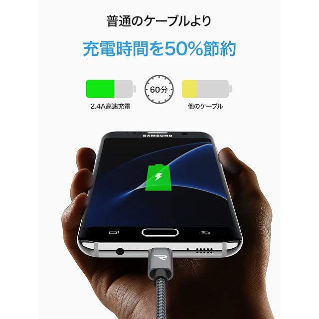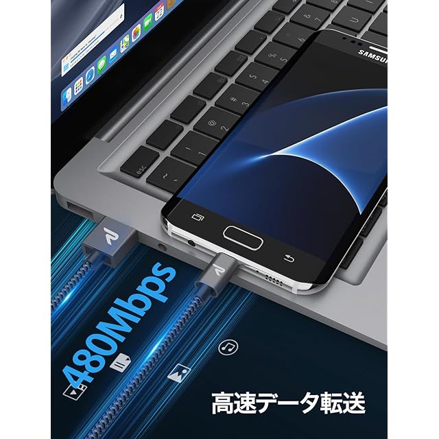 【高速充電とデータ転送】2.4A充電ケーブルは、標準タイプのケーブルより高速に充電し、USB 2.0経由で480Mbitsまでデータ転送可能。