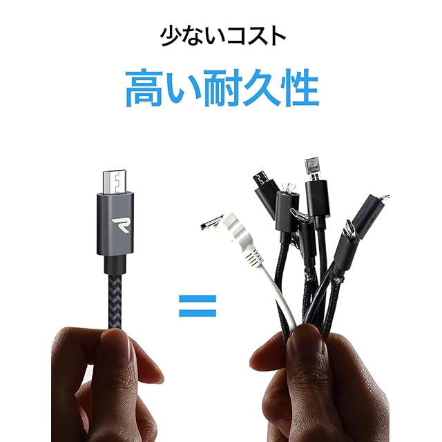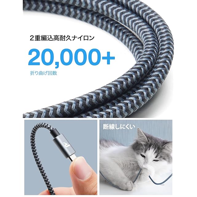 【長持ちで頑丈なケーブル】20,000回以上の曲げ試験と10,000回以上の指抜き試験にに合格しており、耐久性にとても優れております。少々雑な扱いにも耐えられるきっしりしたusbケーブルです。