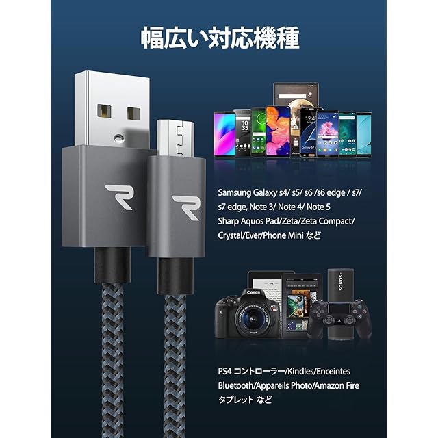 【幅広い適応】Sharp Aquos, Sony Xperia, Fujitsu Arrows, Asus ZenFone, Samsung, Huawei, Kindle, PS4,PS4 Slim,PS4 Pro,Xboxコントローラーなどマイクロusb機器にフルサポートします。手元の機器が「凸」のかたちのマイクロ端子かどうかをご確認お願いします。