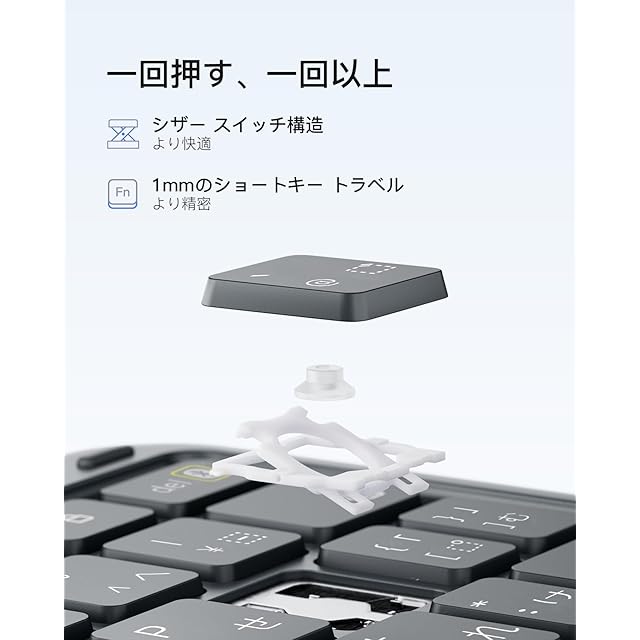 超薄軽量:ipad a16 キーボードの厚さはわずか7.6mm(コイン3枚重ねた厚さ)、重量はたった450g。他社フル機能キーボードより200g軽量です。通勤時はビジネスバッグに詰め込み、出張時はリュックに入れてもスペースを取らず、片手で簡単に持ち運べます。地下鉄で急な文書修正やカフェでの待ち時間にメール返信、モバイルワークがこれまで以上に楽に
