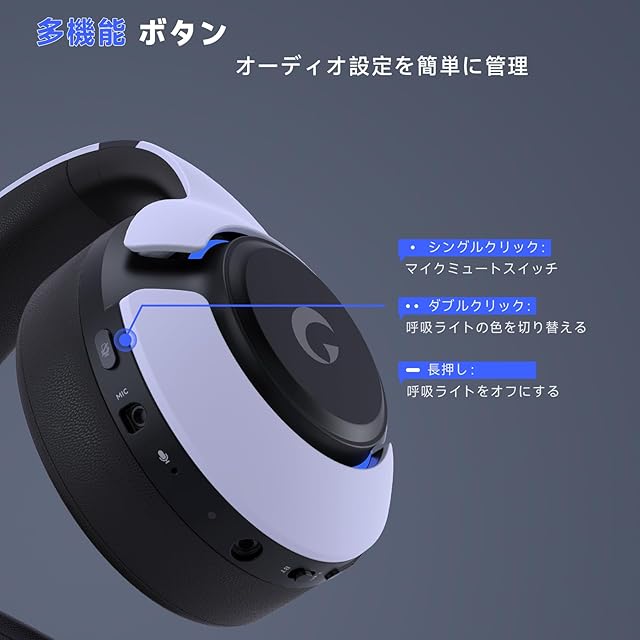 Gtheosプロ素晴らしいゲーム体験提供:PS5対応のゲーミング ヘッドセットで、カラフルな呼吸ライトが搭載されており、ゲームの雰囲気を一層盛り上げます。マイクミュートボタンには複数の機能があり、1回押すとマイクがミュートになり、2回押すとライトの色が変わり、長押しするとライトがオフになります。高精度な50mm磁性ネオジムドライバーによりスピーカーの感度が向上し、深みのある低音とクリアな高音域のディテールを提供します。3Dサラウンドサウンドによって、リアルなオーディオ体験が得られます。