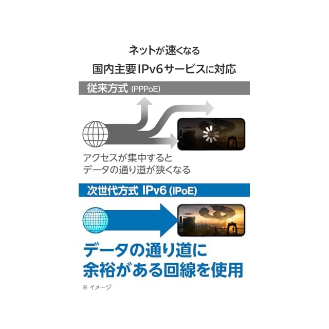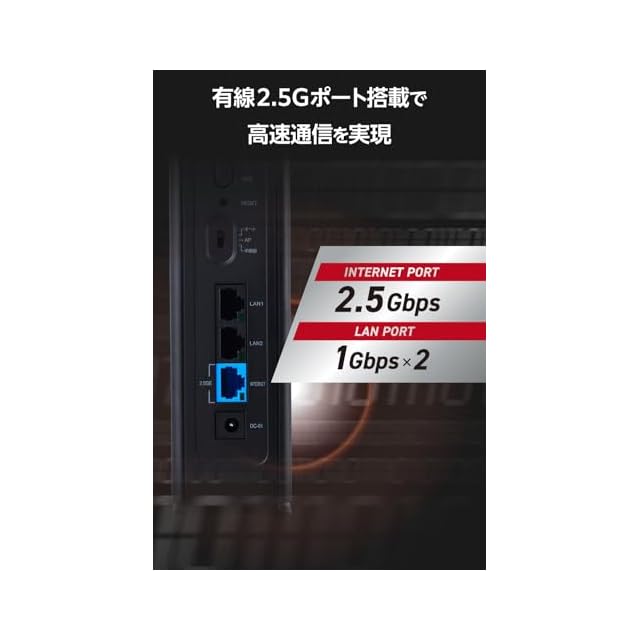<b>【 仕様 】</b><br>■対応OS(Windows):Windows 11/10<br>■対応OS(Mac):macOS Sonoma 14/macOS Ventura 13/macOS Monterey 12/macOS Big Sur 11<br>■対応OS(iOS):iOS 17/16/15<br>■対応OS(iPadOS):iPadOS 17/16/15<br>■対応OS(Android):Android 14/13/12/11/10<br>■セットアップツール対応ブラウザ:Microsoft Edge、 Google Chrome 、Safari ※標準搭載のWebブラウザーを使った初期設定(インターネット接続設定)のみ対応しています。<br>■対応機器(無線LAN):iPhoneシリーズ、iPadシリーズ、Android端末、各種ゲーム機(ニンテンドー3DSシリーズ、PlayStation(R)Vitaシリーズ、PlayStation(R) 5/4、NINTENDO SWITCH(TM))、各種無線LAN搭載機器<br>■有線規格:IEEE 802.3bz(2.5GBASE-T)、IEEE 802.3ab(1000BASE-T)、IEEE 802.3u(100BASE-TX)、IEEE 802.3(10BASE-T)準拠<br>■有線コネクター:WAN:RJ-45型(2.5Gbps)×1ポート、LAN:RJ-45型(1Gbps)×2ポート ※全ポートAuto MDI/MDI-X、Auto-Negotiation対応<br>■有線伝送速度(WAN):2.5Gbps、1000Mbps、100Mbps<br>■有線伝送速度(LAN):1000Mbps、100Mbps、10Mbps<br>■有線設定(WAN):IPアドレス自動取得、PPPoE認証(1セッション)、IPアドレス固定、IPv4 over IPv6(MAP-E)、IPv4 over IPv6(DS-Lite)、IPv4 over IPv6(IPIP)、SLAAC、DHCPv6-PD<br>■有線設定(LAN):DHCPサーバー(最大253台)、DHCP固定割り当て(最大60エントリー)<br>■ハードウェアNAT:対応<br>■無線規格:IEEE 802.11be(draft)、IEEE 802.11ax、IEEE 802.11ac、IEEE 802.11n、IEEE 802.11g、IEEE 802.11b、IEEE 802.11a準拠<br>■無線伝送方式:IEEE 802.11be(draft):MIMO-OFDMA、IEEE 802.11ax:MIMO-OFDMA、IEEE 802.11ac:MIMO-OFDM、IEEE 802.11n:MIMO-OFDM、IEEE 802.11g:OFDM、IEEE 802.11b:DS-SS、IEEE 802.11a:OFDM<br>■無線伝送速度[802.11be(draft)](理論値):IEEE 802.11be(draft):5GHz帯 最大2882Mbps 2.4GHz帯 最大688Mbps(※) ※受信は最大574Mbps、送信は接続機器が4096QAM通信対応の場合、最大688Mbps<br>■無線伝送速度[802.11ax](理論値):IEEE 802.11ax:5GHz帯 最大2402Mbps 2.4GHz帯 最大574Mbps<br>■無線伝送速度[802.11ac](理論値):IEEE 802.11ac:5GHz帯 最大1733Mbps、IEEE 802.11n:5GHz帯 最大300Mbps 2.4GHz帯 最大400Mbps(※) ※接続機器が256QAM通信対応の場合、最大400Mbps<br>■無線伝送速度[802.11g/b/a](理論値):IEEE 802.11g:最大54Mbps、IEEE 802.11b:最大11Mbps、IEEE 802.11a:最大54Mbps<br>■周波数帯域:2.4GHz帯:2,400~2,484MHz、5.2GHz帯(W52):5,150~5,250MHz、5.3GHz帯(W53):5,250~5,350MHz、5.6GHz帯(W56):5,470~5,730MHz<br>■チャンネル:2.4GHz帯:1~13ch、5GHz帯(W52/W53/W56):36/40/44/48/52/56/60/64/100/104/108/112/116/120/124/128/132/136/140/144ch<br>