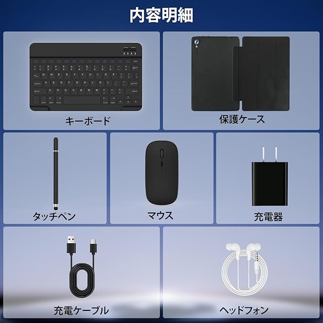 【贈り物に最適・児童守護・GMS認証・セット内容・1年間付】 セット内容:タブレット本体、キーボード、ヘッドフォン、タッチペン、マウス、折りたたみ式保護ケース、ACアダプター、取扱説明書 注:タブレットではキーボードショートカット機能がサポートされていないため、代わりにタッチスクリーンで操作してください。安心のメーカー付:1年の期限を持ってます、万が一商品は不具合があったら、お気軽に弊社にメールで連絡してください。また、ご使用中問題がございましたらご連絡を頂けると迅速に対応致します。お客様にご満足頂けるよう努力を尽くし致します。