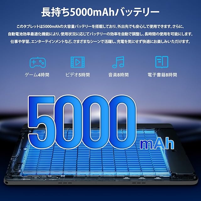【Wi-Fi 6・BT5.4・5000mAhバッテリー・顔認識・パーソナライズされた体験】このタブレットは、WiFi 5Gおよび2.4Gデュアルバンドネットワークに対応し、Bluetooth 5.4技術を搭載しているため、さまざまなデバイスとシームレスに接続し、より便利なワイヤレス体験を提供します。画面分割機能を搭載し、マルチタスク処理を効率化、仕事とエンターテイメントの両立が可能です。5000mAhの大容量バッテリーとスマートバッテリー管理技術を内蔵しており、頻繁に充電する必要がなく、バッテリーの寿命を延ばします。新しいユーザーインターフェース(UI)と豊富なパーソナライゼーションオプションにより、個々のニーズに合わせてデバイスの設定を簡単に調整できます。