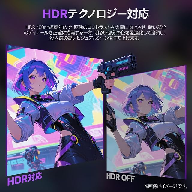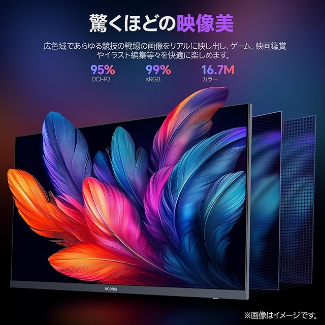 【驚くほどの映像美】178°広視野角の非光沢Fast IPSパネルを採用し、24.5インチでFHD(1920x1080)の高解像度、映像は鮮明で、どうな角度から見ても画像が鮮やかに美しく映し出します。DCI-P3 95%、sRGB 99%の広色域と16.7M以上の表示色で、忠実な色を再現します。350nitの高輝度とHDR400対応で、画像の明暗やディテールをすっきり映し出して、生き生きとした豊かな世界が表現されます。