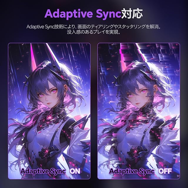【超高速320Hzリフレッシュレート・1ms(GTG)応答速度】最大320Hzリフレッシュレートに対応でき、1秒間あたり320枚の画像表示と1ms(GTG)高速応答速度で、FPSや格闘ゲームの高速動作もなめらかに再現。Adaptive Syncテクノロジーも対応(FreeSync&G-Sync対応)で、画面のティアリングやスタッタリングを解消でき、残像感がなくより滑らかでスムーズなゲームプレイをお楽しめます。