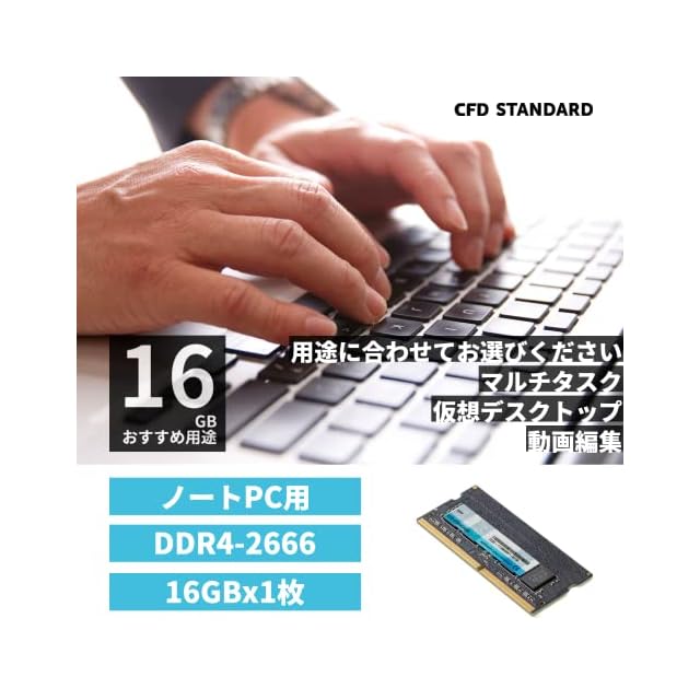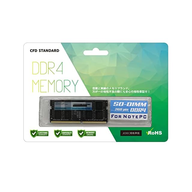 CFD販売 ノートPC用メモリ DDR4-2666 (PC4-15600) 16GB×1枚 (16GB) 相性 260pin シー・エフ・デー販売 CFD Standard D4N2666CS-16G
