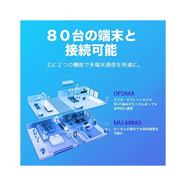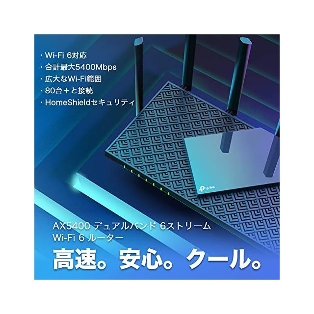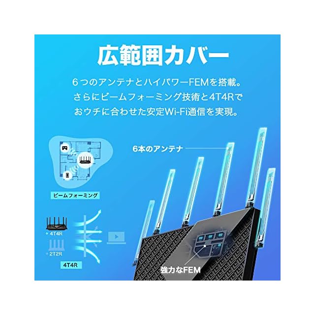【特徴】AX5400規格 4804 + 574Mbps Wi-Fi 6 ルーター。かんたん設定でWi-Fiをもっと身近に。長期のメーカー3年を付帯。推奨環境:3階建/マンション 4LDK/ 54台まで。