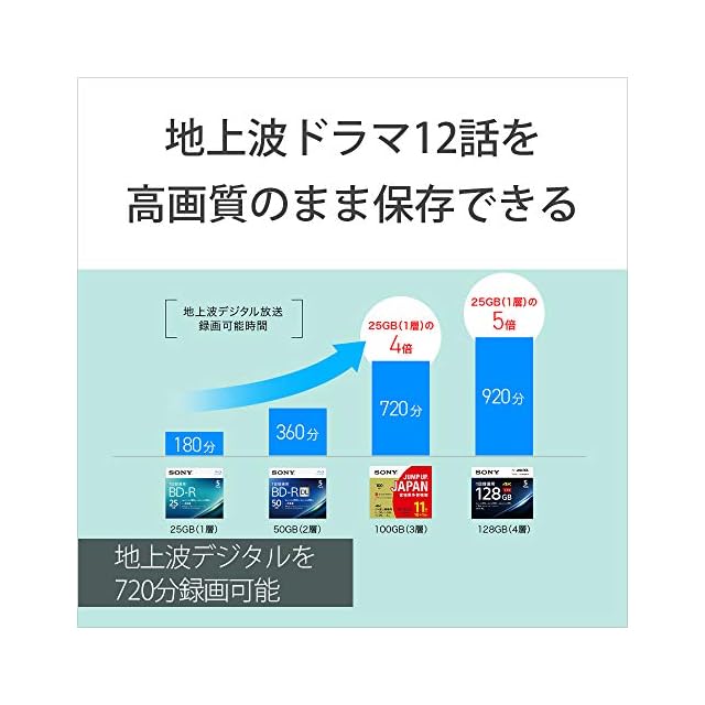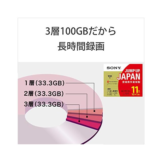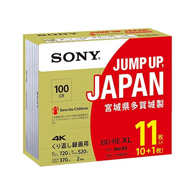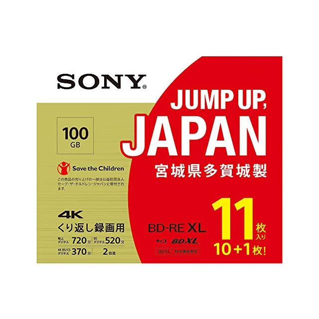 ソニー(SONY) 日本製 ブルーレイディスク BD-RE XL 100GB (1枚あたり地デジ約12時間) 繰り返し録画用 11枚入り 2倍速ダビング対応 ケース付属 11BNE3VZPS2