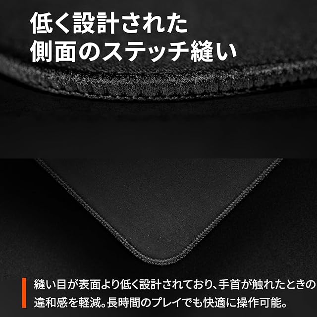 【低く設計された側面のステッチ縫い】縫い目が表面より低く設計されており、手首が触れたときの違和感を軽減。長時間のプレイでも快適に操作できます。