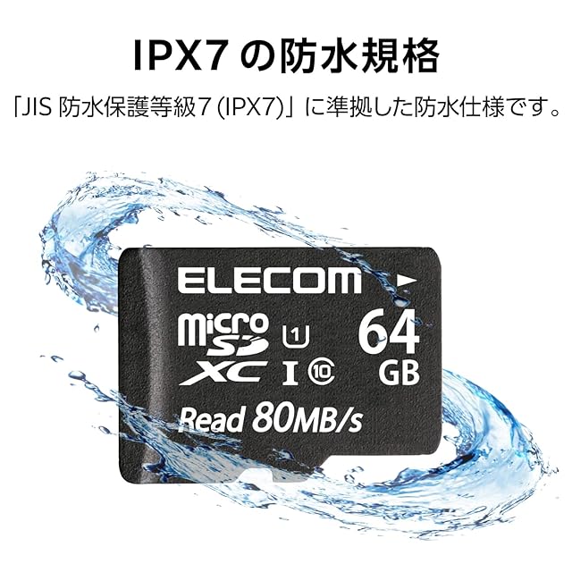 エレコム microSD 64GB マイクロSDカード UHS-1 U1 microSDXC IPX7 MF-AMS064GU11