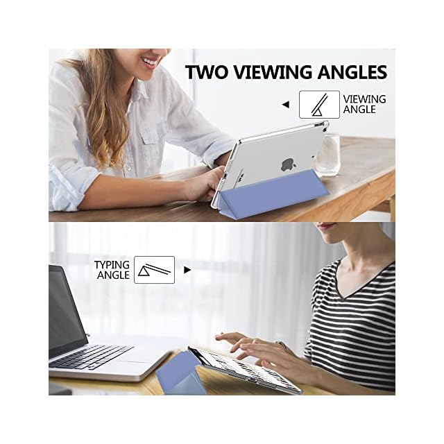 [三つ折りスタンド]: 表面カバーは二つの溝デザインされて、溝を折るとスタンドになれます。二つの置く角度によって両手解放で動画鑑賞を楽々に楽しめ、またはタイピング角度にも変えて、仕事やゲームなどもっと快適に進められます。