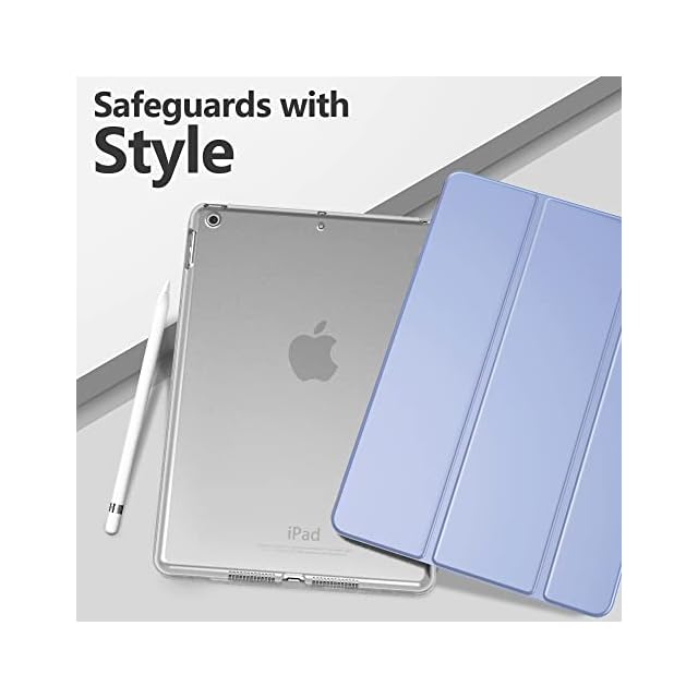 iPad 9 ケース 2021 MoKo iPad 10.2 ケース 第9/8/7世代(2021/2020/2019) 半透明 オートスリープ機能 薄型 スタンド 三つ折り 高級PUレザー 裏地マイクロファイバー 傷防止 スマートケース Lavender