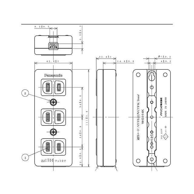 ●ブラック色●4コ口●15A-125V 合計1500Wまで