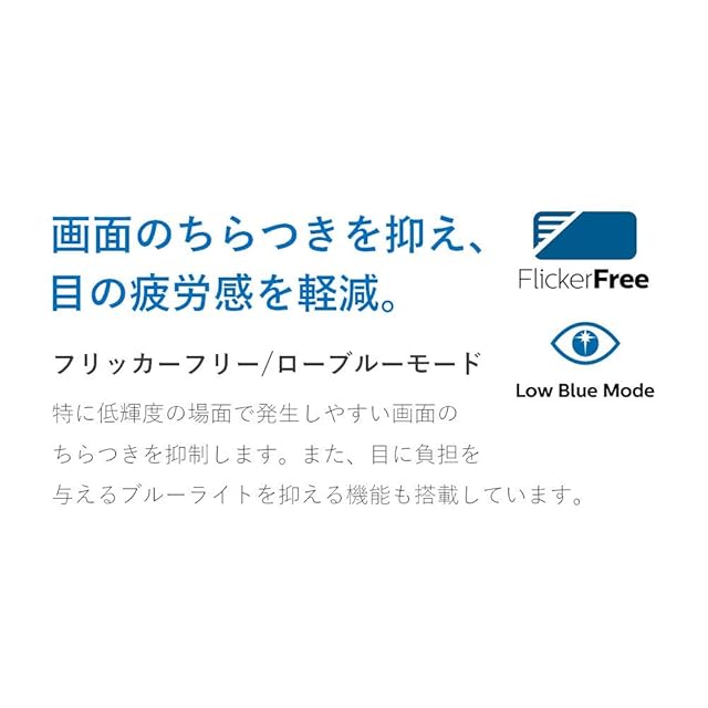[特徴] 高画質・省電力に加え、目の疲れを軽減するフリッカーフリー・ローブルーモード機能を搭載