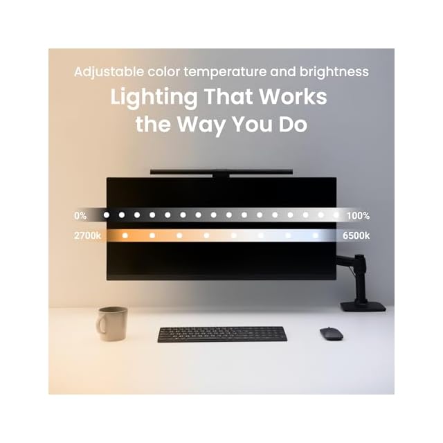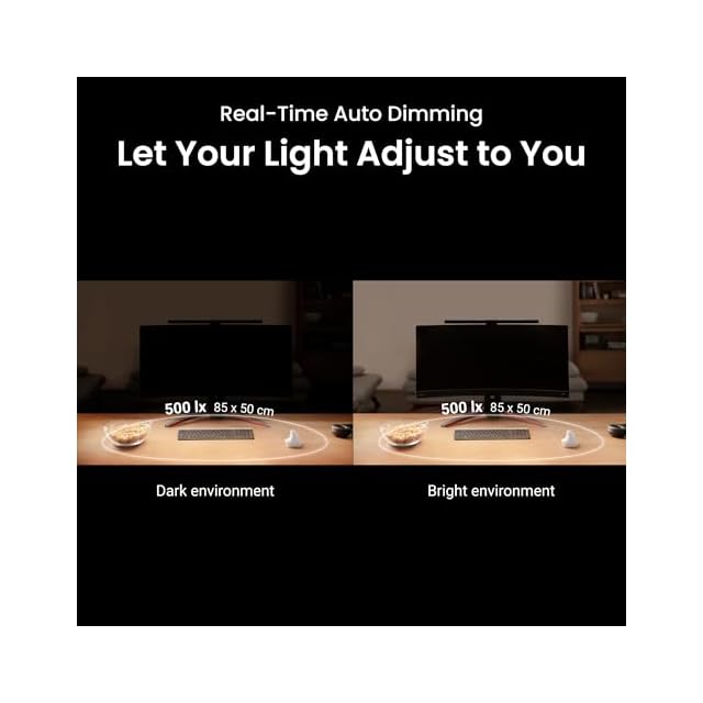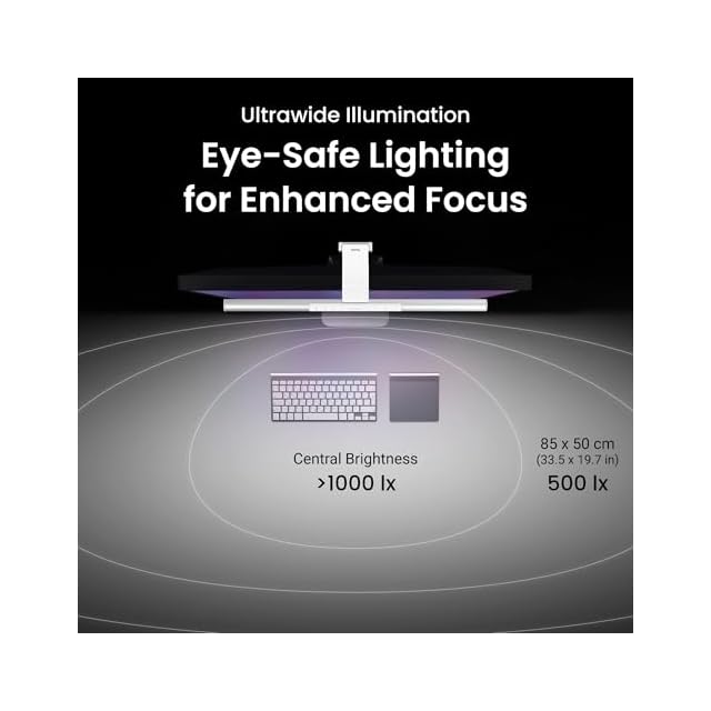 広範囲照明:ScreenBar Pro の中央照度が1000ルクス以上で、85*50cmの範囲で500ルクスの照度を提供し、ほとんどのPC作業環境において目に優しい快適な照明を提供します。