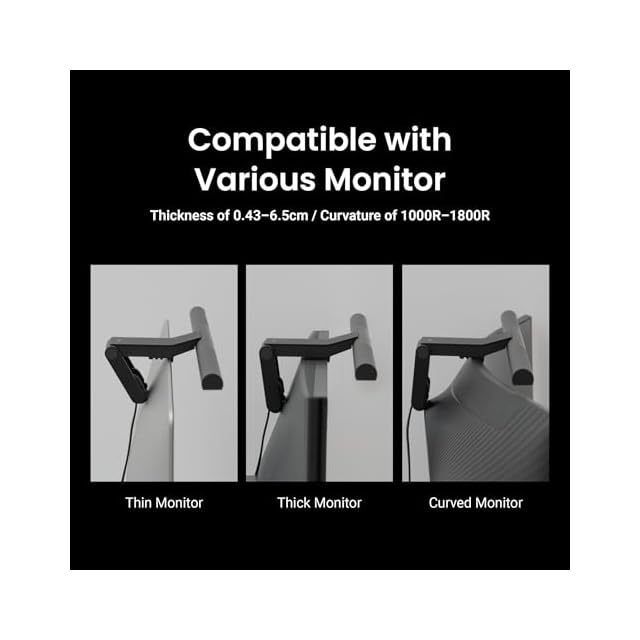 互換性高:0.43〜6.5cmの厚さのモニターや曲率1000〜1800Rのモニターに引き掛け可能です。特許取得の新クランプは、湾曲モニターや背面に突起があるモニターにも取り付けられます。カメラ遮らないように、ベゼルレスモニターとも互換性あります。