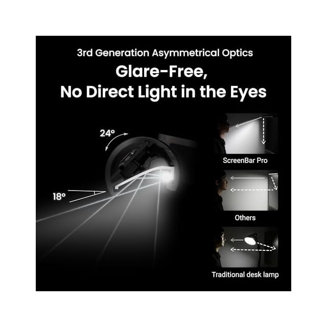 ASYM-LIGHT非対称光学技術:ScreenBar Pro独自の非対称光学技術により、画面への映り込みやまぶしさを軽減し、目に優しく作業効率を向上させます。