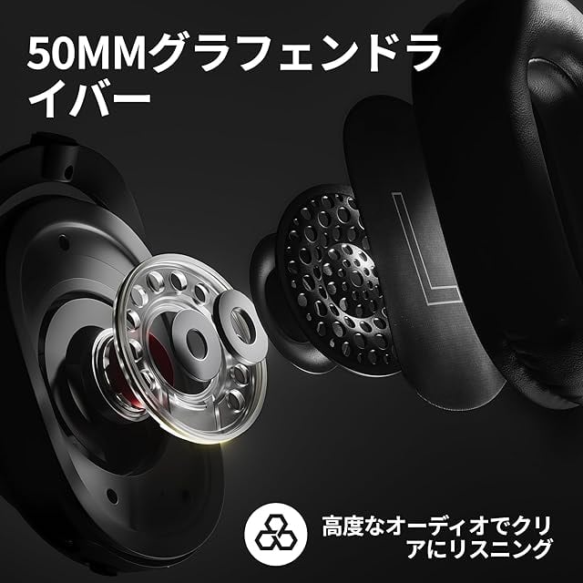 【50mmグラフェンドライバー】音の歪みを極限まで低減、強化されたオーディオ周波数特性により、ゲーム内の足音や動きのかすかな音など、ゲーム内で表現されているオーディオを瞬時に、そして繊細に聞くことができます。