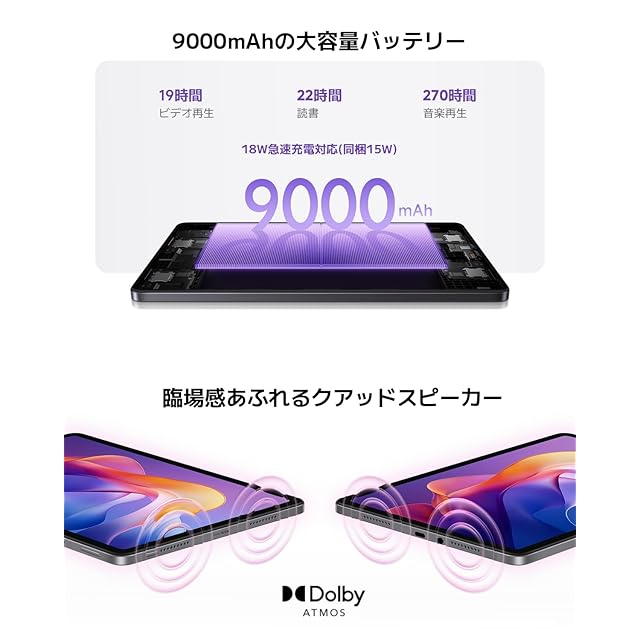 【臨場感あふれるクアッドスピーカー】Redmi Pad 2はDolby Atmosに対応し、映画・ゲーム・音楽などあらゆるコンテンツで迫力あるサウンド体験を実現します。