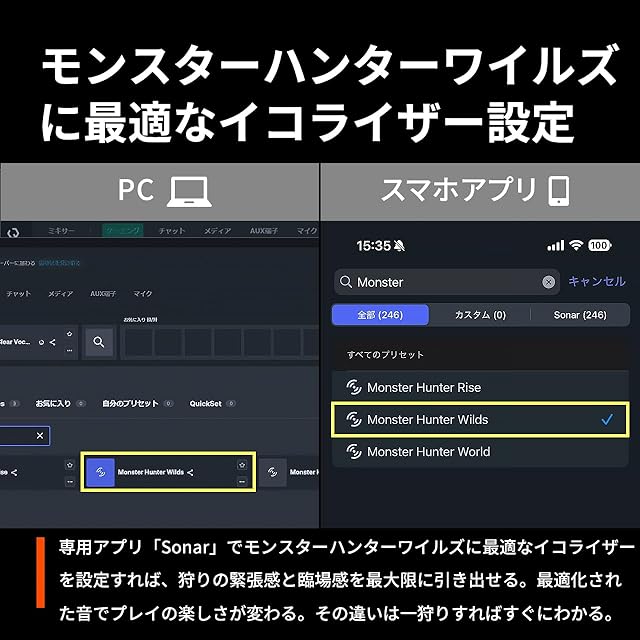 【100以上のゲームや音楽に最適なEQプリセットを選択可能】ゲーム、音楽、映画などに最適なイコライザー (EQ) 設定を100個以上ご用意。あらゆるコンテンツをベストな環境で楽しめます。