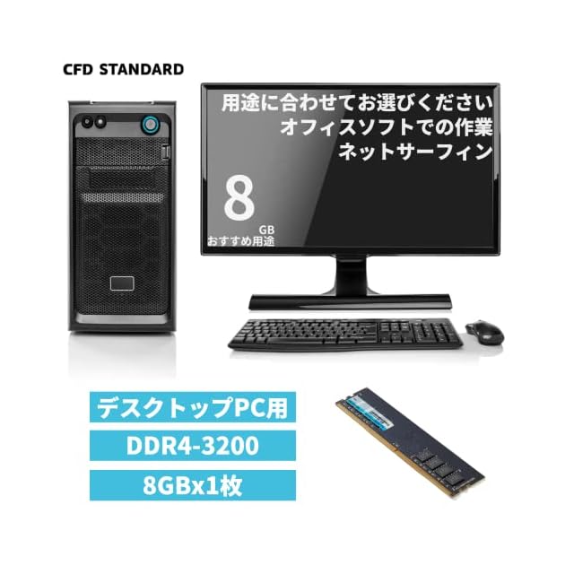 シー・エフ・デー販売 CFD販売 CFD Standard デスクトップ用 メモリ DDR4 3200 (PC4-25600) 8GB×1枚 288pin DIMM 相性 D4U3200CS-8G