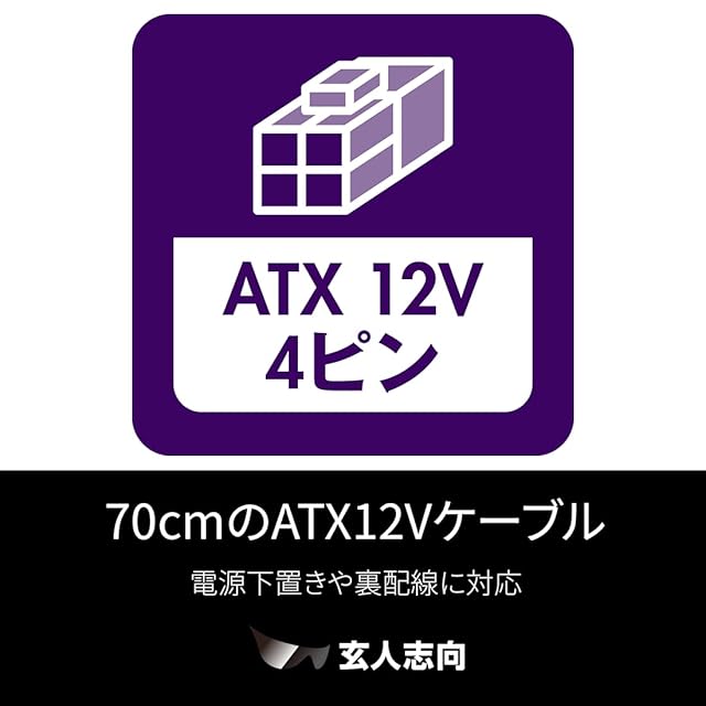 70cmのATX12Vケーブルを採用し電源下置きや裏配線にも対応可能