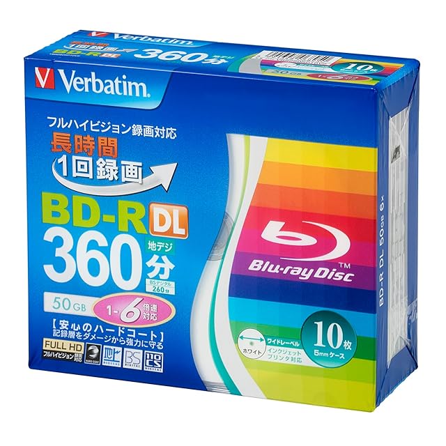 バーベイタム (Verbatim) 1回録画用 ブルーレイディスク BD-R DL 50GB 片面2層 1-6倍速 10枚 ディーガ など国内主要メーカーのレコーダー動作確認済 インクジェットプリンタ対応 ホワイト