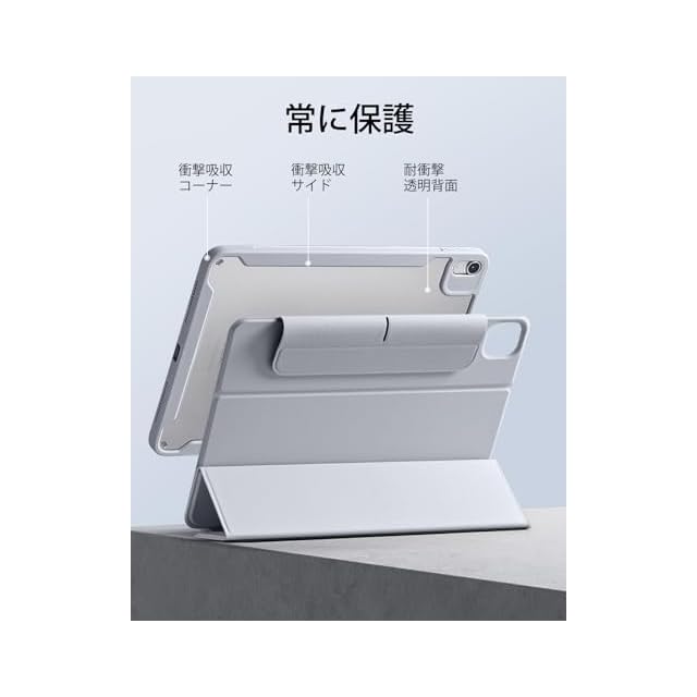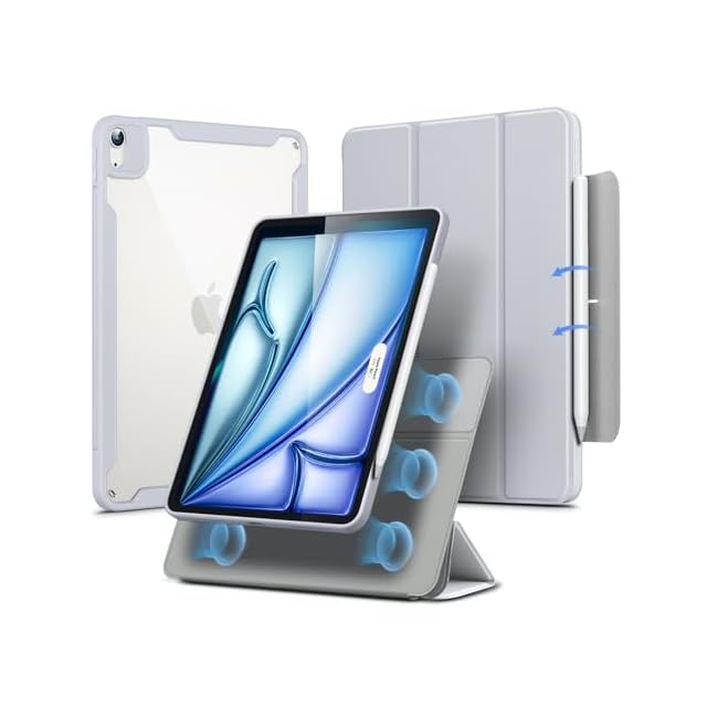 ESR iPad Air 11インチ ケース (M3/M2、2025/2024) iPad Air 第5/4世代 ケース(2022/2020)専用 Pencilホルダー付き 取り外し可能マグネットカバー 縦置き/横置きスタンド Pencil Pro/USB-C完全対応 Rebound 360シリーズ グレー