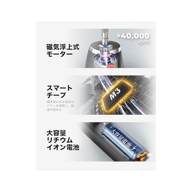 【強力な音波洗浄と1年】最新型の電動歯ブラシである。歯肉線に沿って音波振動技術で効果的に洗浄し、99%以上の歯垢を除去し、歯を白くなります。手磨きよりも2週間で口腔健康の状況がアップされます。[ 一年 ] 万が一、取扱説明書に従った使用で不具合があった場合には、いつでもご連絡ください。弊店はご満足なカスタマー サービスを提供いたします。
