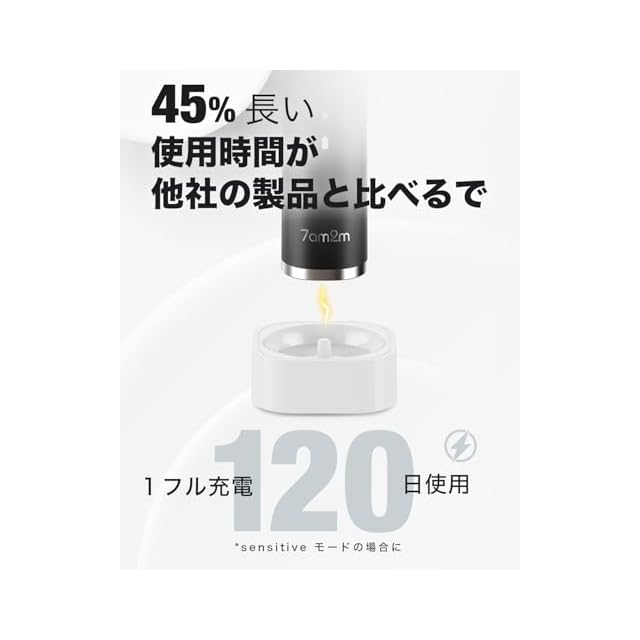 【90日連続使用可能、ワイヤレス充電、IPX7防水】1回のフル充電で90日間の日常(1日に2回)に使用可能です。最高なバッテリー容量です。フル充電後、電源が自動に切ります。低バッテリー警示もあります。超高速ワイヤレス充電(安価なUSB充電を忘れましょう)。また、お風呂でも使えるIPX7防水性能を備えています。水が充電ポートから入り、USB充電器より安全です。