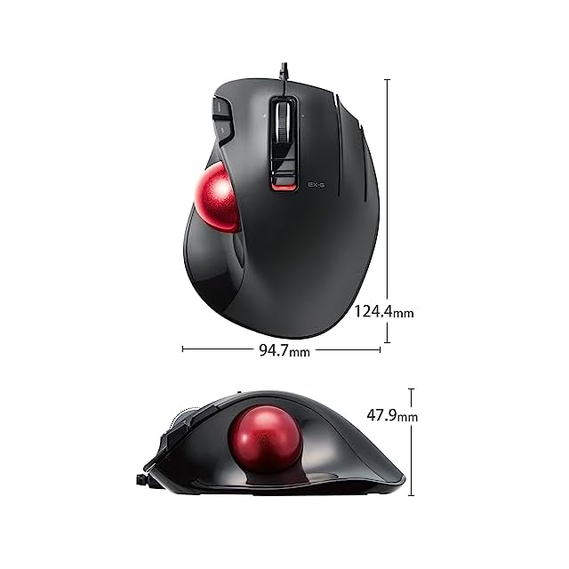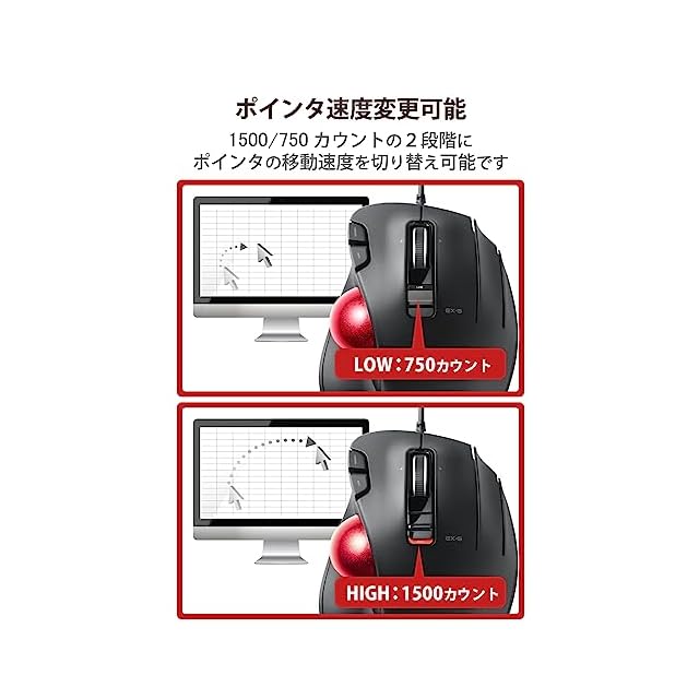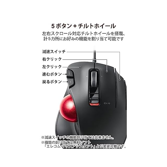エレコム USB トラックボールマウス 5ボタン + 減速スイッチ + チルト機能 有線 赤色ボール標準搭載モデル 親指操作タイプ ブラック M-XT2URBK-G