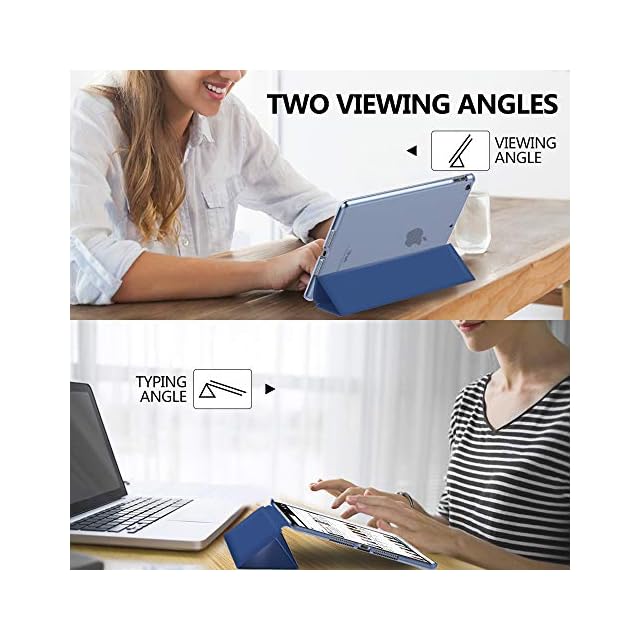 [三つ折りスタンド]: 表面カバーは二つの溝デザインされて、溝を折るとスタンドになれます。二つの置く角度によって両手解放で動画鑑賞を楽々に楽しめ、またはタイピング角度にも変えて、仕事やゲームなどもっと快適に進められます。