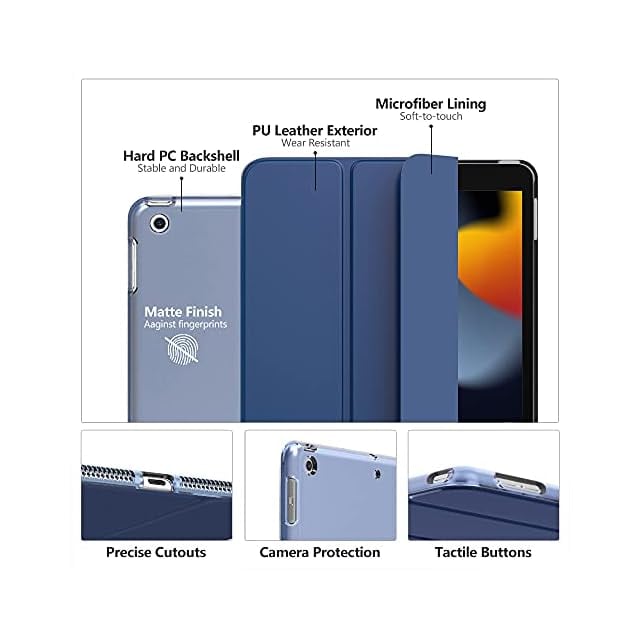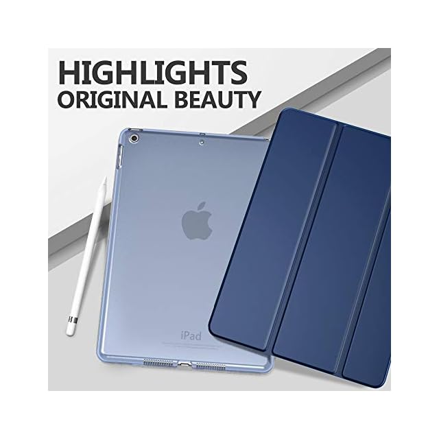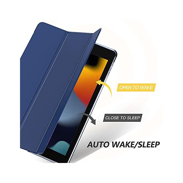 iPad 9 ケース 2021 MoKo iPad 10.2 ケース 第9/8/7世代(2021/2020/2019) 半透明 オートスリープ機能 薄型 スタンド 三つ折り 高級PUレザー 裏地マイクロファイバー 傷防止 スマートケース NavyBlue