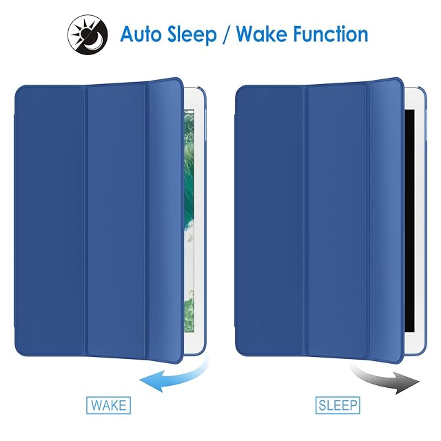 JETech iPad 9.7インチ (2018/2017,第6/5世代用) ケース PUレザー 三つ折スタンド オートスリープ機能 (紺)
