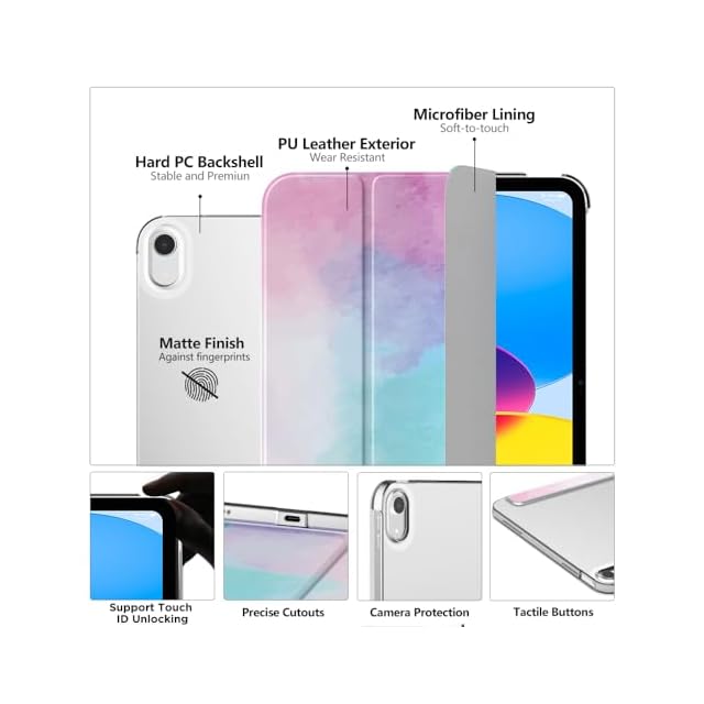 MoKo iPad 第11世代 (A16) ケース 2025、 iPad 第10世代 ケース 2022 iPad 11/10世代 11/10.9インチ 保護カバー 手帳型 スタンドケース オートスリープ対応 高級PUレザー外装 PC製シェルケース マイクロファイバー裏地 軽量 薄型 傷つき/汚れ防止 WaterColor