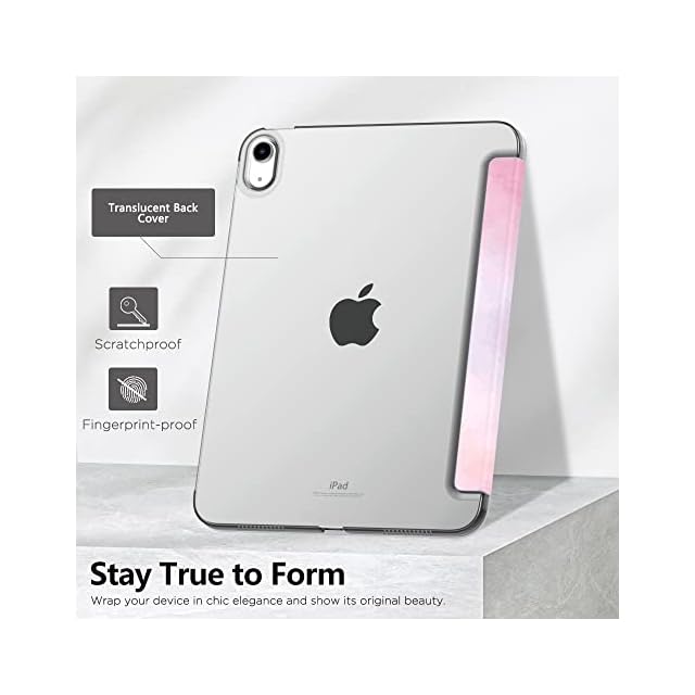 「上質な素材採用」蓋は手触りが良く高級感のあふれる耐久性に優れた高級PUレザーで、バックケースは頑丈で耐摩耗性の高いマット半透明のPC素材を採用しており、アップルロゴが透けて見えて綺麗に見映えてきます。裏地材質は液晶表面に優しいマイクロファイバーの仕上がりで、タブレットに最高の保護力を提供してくれます。