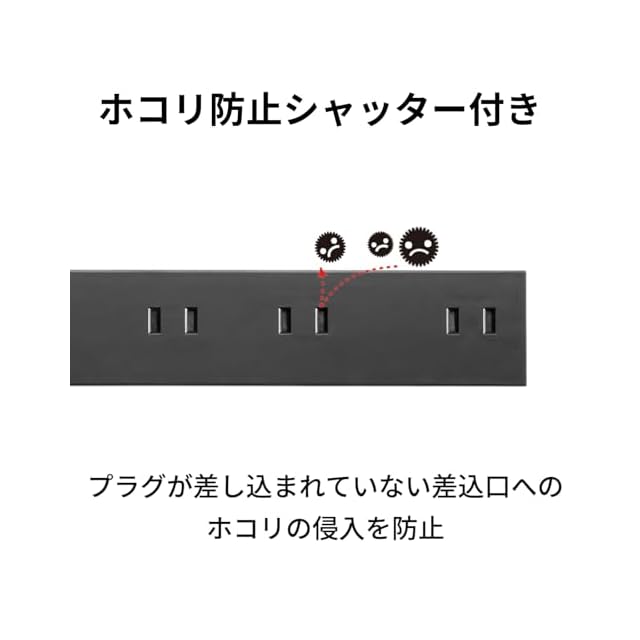 ホコリ防止シャッター付きで、ホコリの侵入を防止します。