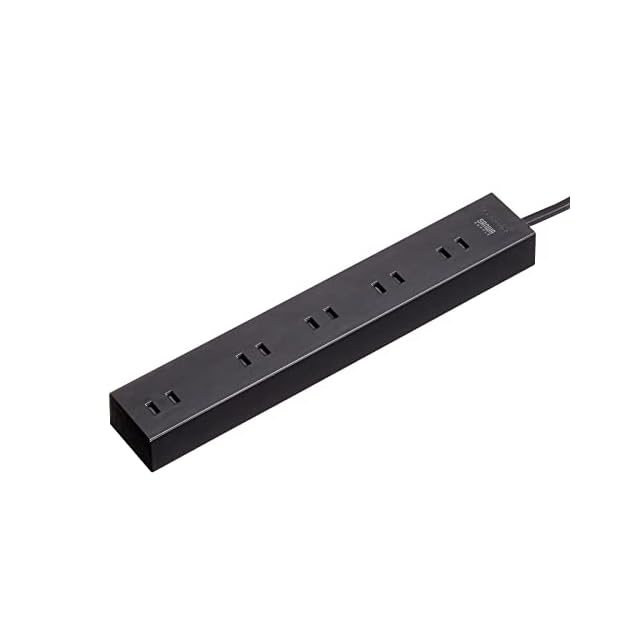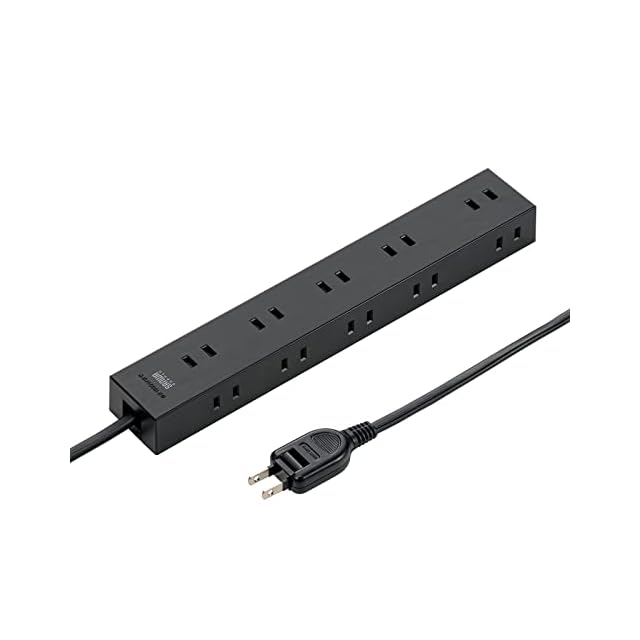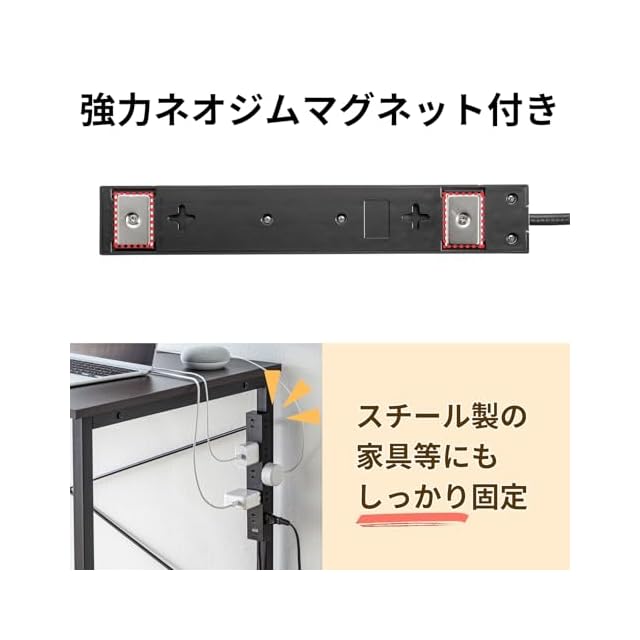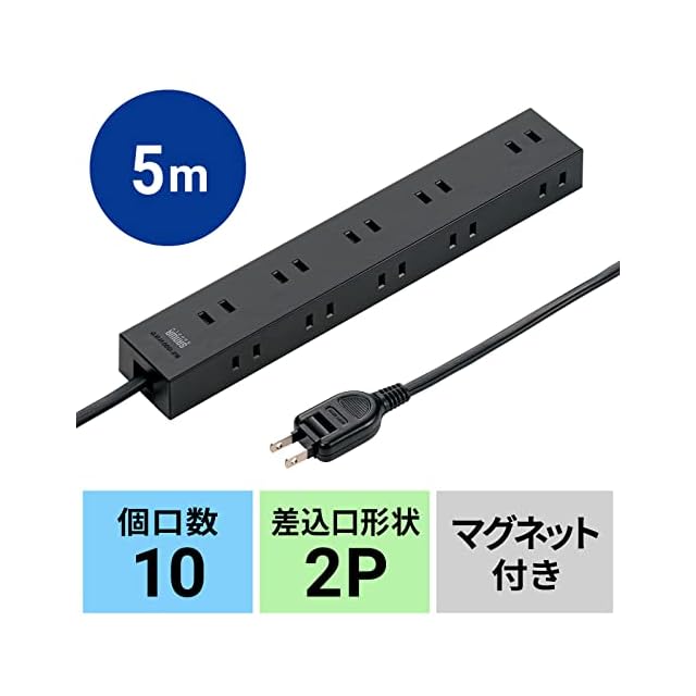 サンワサプライ(Sanwa Supply) 電源タップ 10個口・2P (5m) たくさん挿せるレイアウト 強力ネオジムマグネット ほこりシャッター スイングプラグ ブラック TAP-2210-5BK