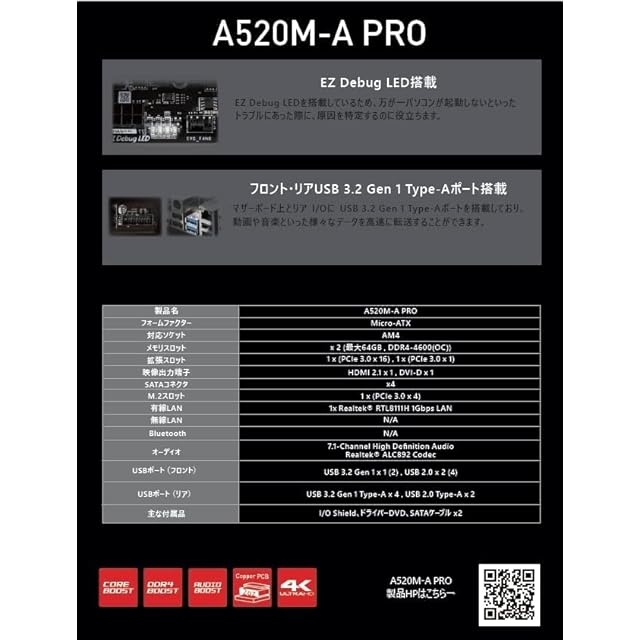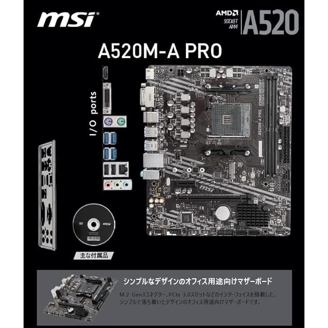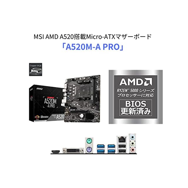 MSI マザーボードA520M-A PRO 【Ryzen 5000シリーズ (AM4)対応】 Micro ATX [AMD A520搭載] MB5136