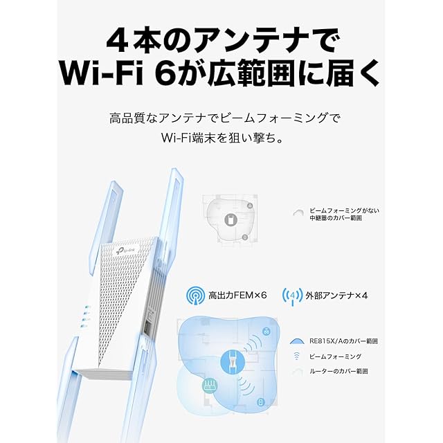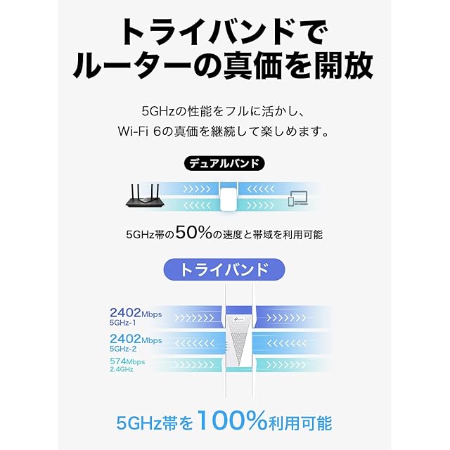 [特徴] Wi-Fi6 AX5400規格 トライバンド 無線LAN中継機。