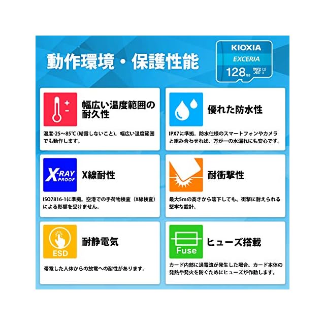 KIOXIA(キオクシア) 旧東芝メモリ microSD 128GB UHS-I Class10 (最大読出速度100MB/s) Nintendo Switch動作確認済 国内サポート正規品 メーカー5年 KLMEA128G