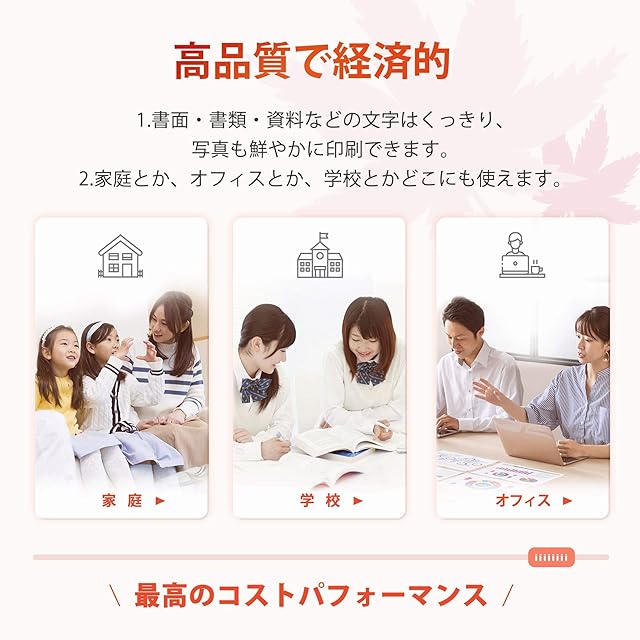 ▲ポイント:簡単にセットでき、使用時には正確にインク残量表示され、文字はくっきり、高品質なカラーのインクで印刷します。