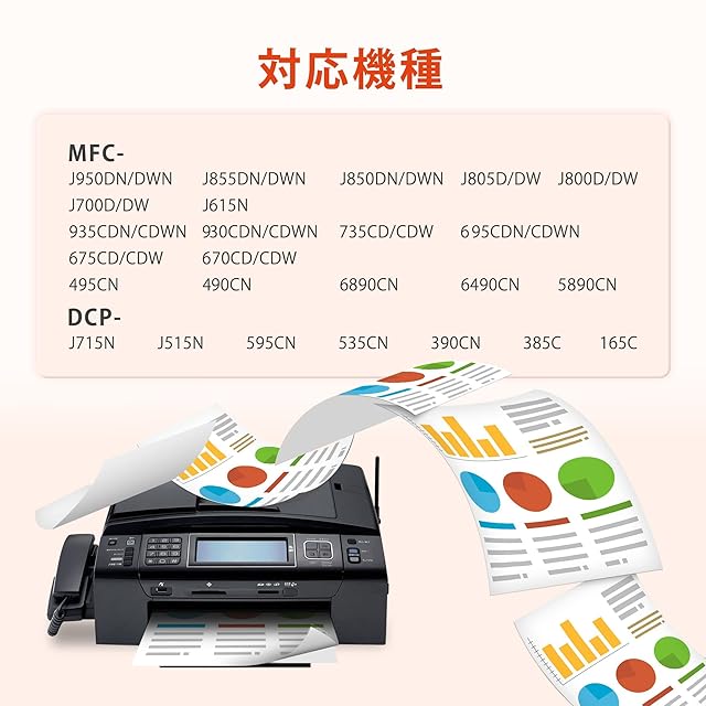 ▲対応機種:弊店 互換 インクカートリッジ の対応機種は ブラザー brother 用 MFC-J950 / MFC-J855 / MFC-J850 / MFC-J805 / MFC-J800 / MFC-J700 / MFC-J615 / MFC-935 / MFC-930 / MFC-735 / MFC-695 / MFC-675 / MFC-670 / MFC-495 / MFC-490 / MFC-6890 / MFC-6490 / MFC-5890 / DCP-J715 / DCP-J515 / DCP-595 / DCP-535 / DCP-390 / DCP-385 / DCP-165 ※ご使用前、必ず説明書に使用方法やQ&Aをご確認ください。